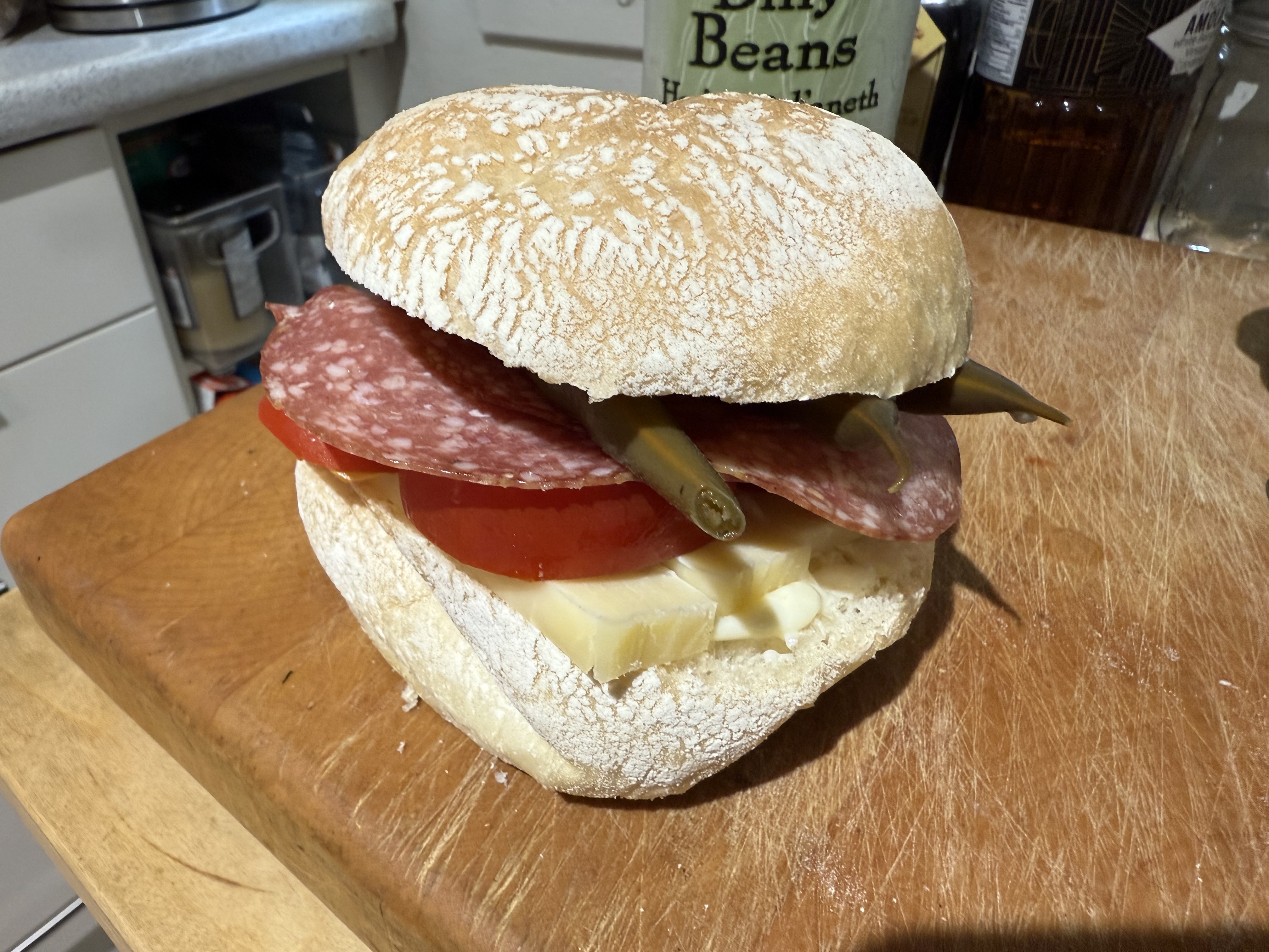 Also bought fresh Portuguese buns and salami there for this epic lunch sandwich (also with tomatoes, cheddar, and garlic pickled green beans).