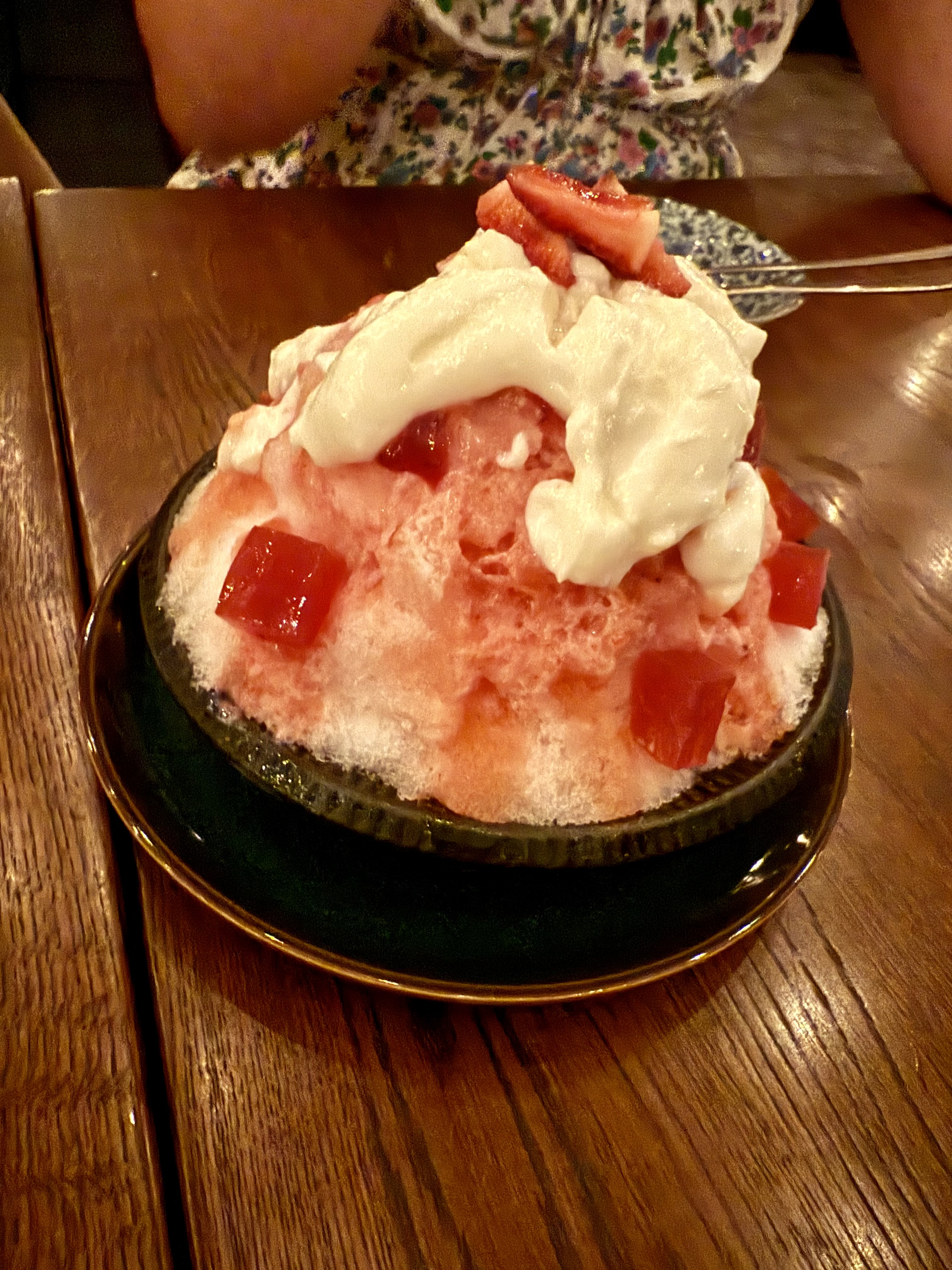 The whole reason for coming was this dessert. Japanese shaved ice treat with strawberries and ice cream and condensed milk.