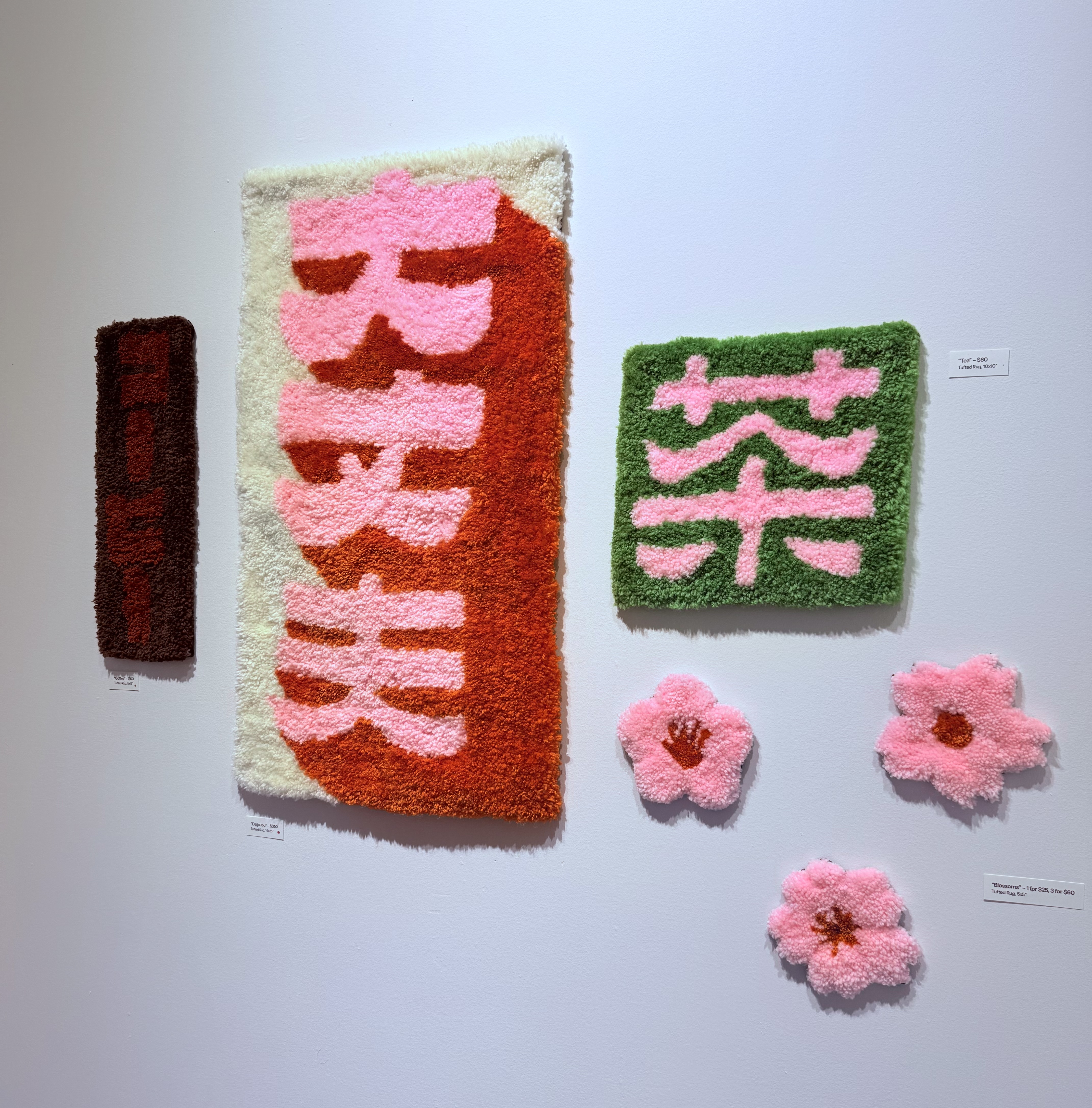 The tufted rug pieces were unique. The one pictured at left in brown that is hardest to see in this picture has the characters for coffee. A Z-Space purchase?